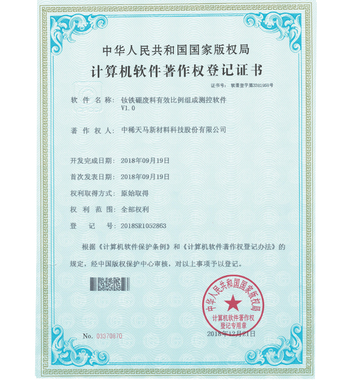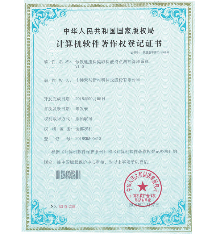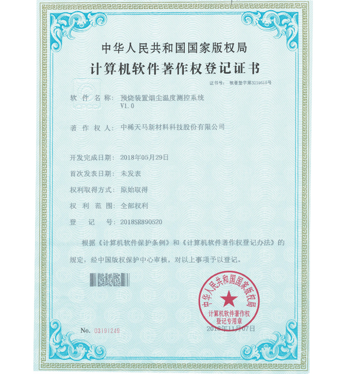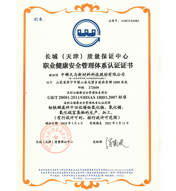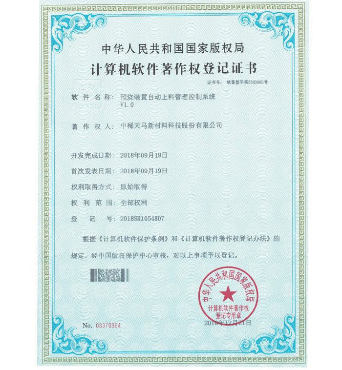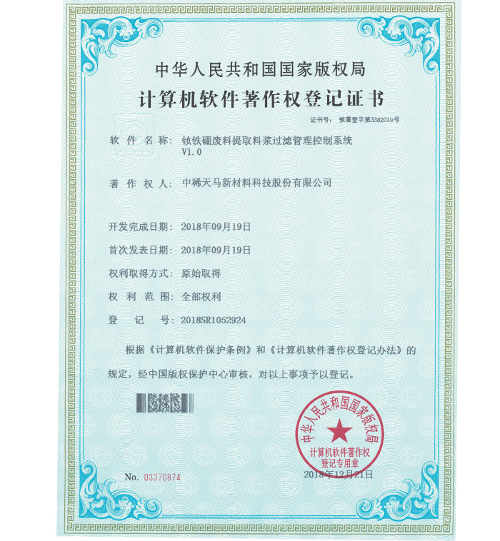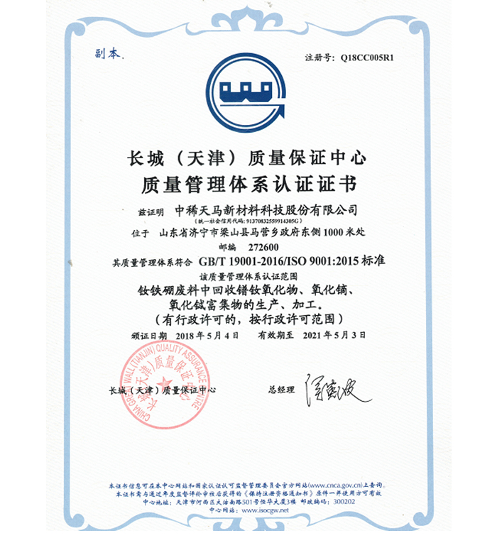 企業(yè)各項(xiàng)技術(shù)指標(biāo)均居同行業(yè)領(lǐng)先地位,擁有 4 項(xiàng)國(guó)家發(fā)明專利,15 項(xiàng)實(shí)用新型專利及 11 件軟件著作權(quán);是中國(guó)稀土行業(yè)協(xié)會(huì)理事單位、山東稀土行業(yè)協(xié)會(huì)理事單位,山東環(huán)境科學(xué)學(xué)會(huì)高級(jí)會(huì)員、中國(guó)稀土學(xué)會(huì)火法冶金專業(yè)委員會(huì)委員、中國(guó)綠色發(fā)展聯(lián)盟理事單位、中國(guó)再生資源回收利用協(xié)會(huì)理事單位,是全國(guó)稀土標(biāo)準(zhǔn)化技術(shù)委員會(huì)委員;通過(guò)了 ISO9001 質(zhì)量管理體系認(rèn)證、ISO14001環(huán)境 管理體系認(rèn)證、OHS18001 職業(yè)健康安全管理體系認(rèn)證、市政府節(jié)能辦清潔生產(chǎn)評(píng)估。
