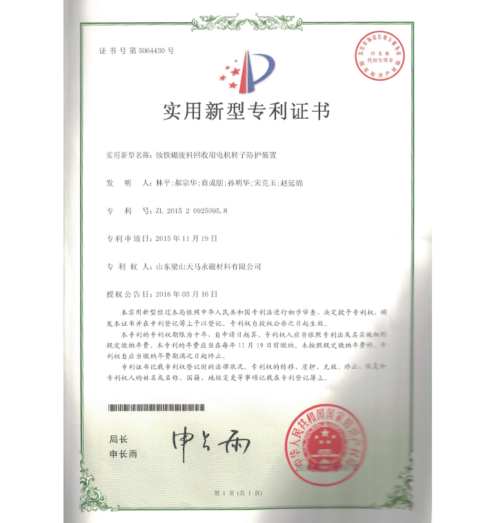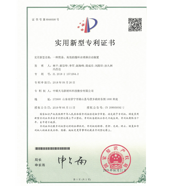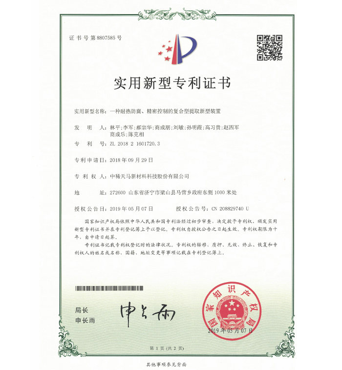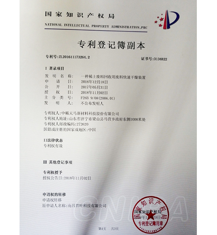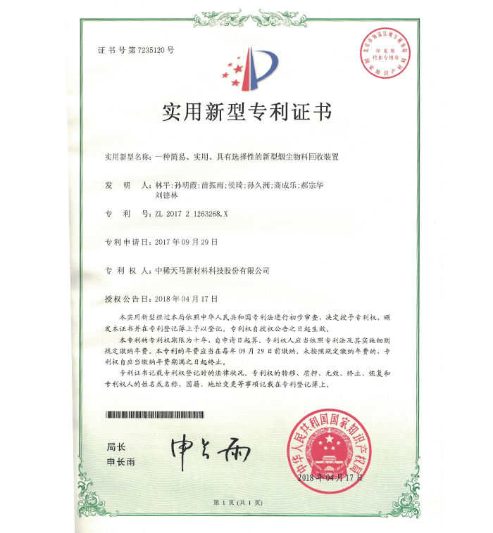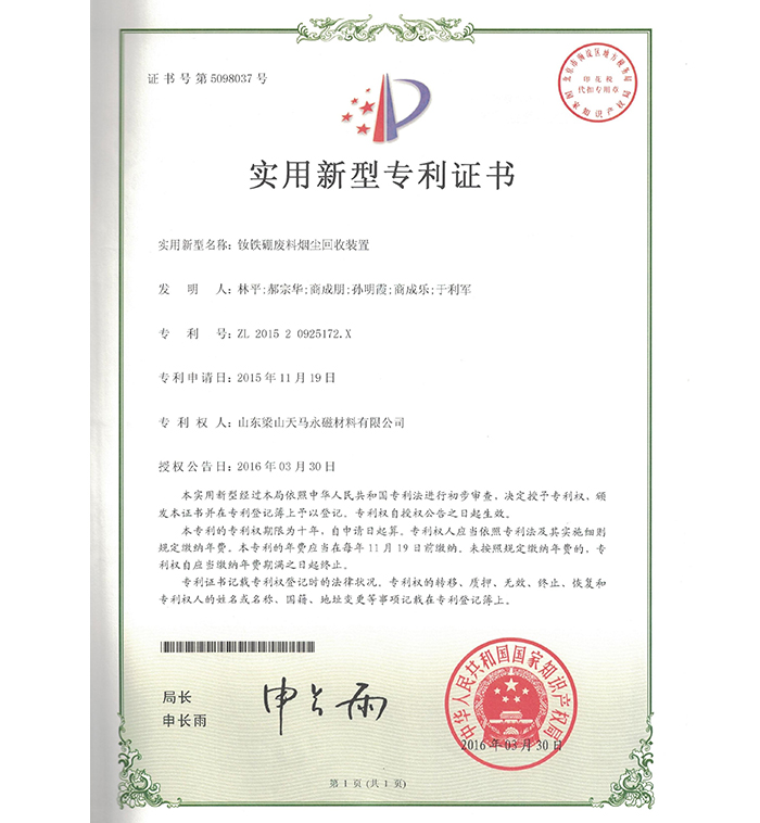 企業(yè)各項技術指標均居同行業(yè)領先地位,擁有 4 項國家發(fā)明專利,15 項實用新型專利及 11 件軟件著作權;是中國稀土行業(yè)協(xié)會理事單位、山東稀土行業(yè)協(xié)會理事單位,山東環(huán)境科學學會高級會員、中國稀土學會火法冶金專業(yè)委員會委員、中國綠色發(fā)展聯(lián)盟理事單位、中國再生資源回收利用協(xié)會理事單位,是全國稀土標準化技術委員會委員;通過了 ISO9001 質量管理體系認證、ISO14001環(huán)境 管理體系認證、OHS18001 職業(yè)健康安全管理體系認證、市政府節(jié)能辦清潔生產評估。
